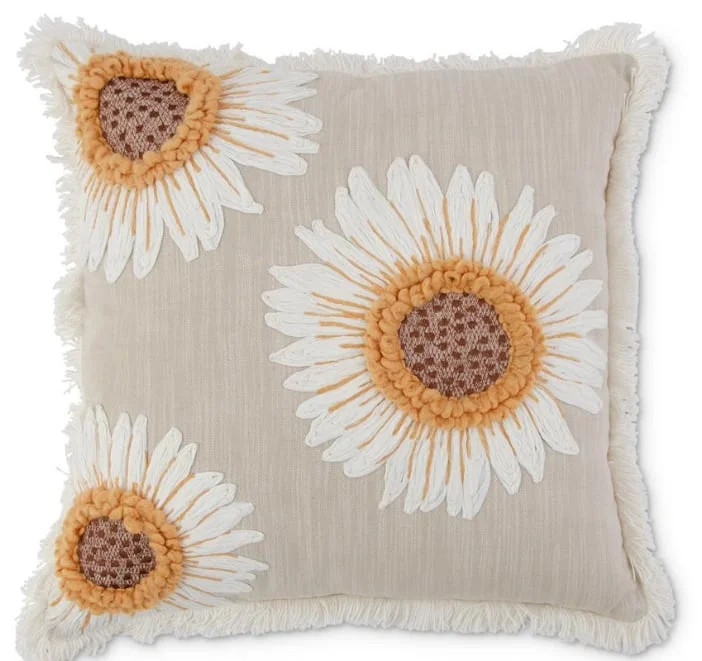 The Pillows and Accessory 18" Square Pillow Embroidered Sunflower, made by K & K Interiors,