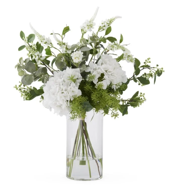 The Pillows and Accessory White Hydrangea with Faux Water, made by K & K Interiors,