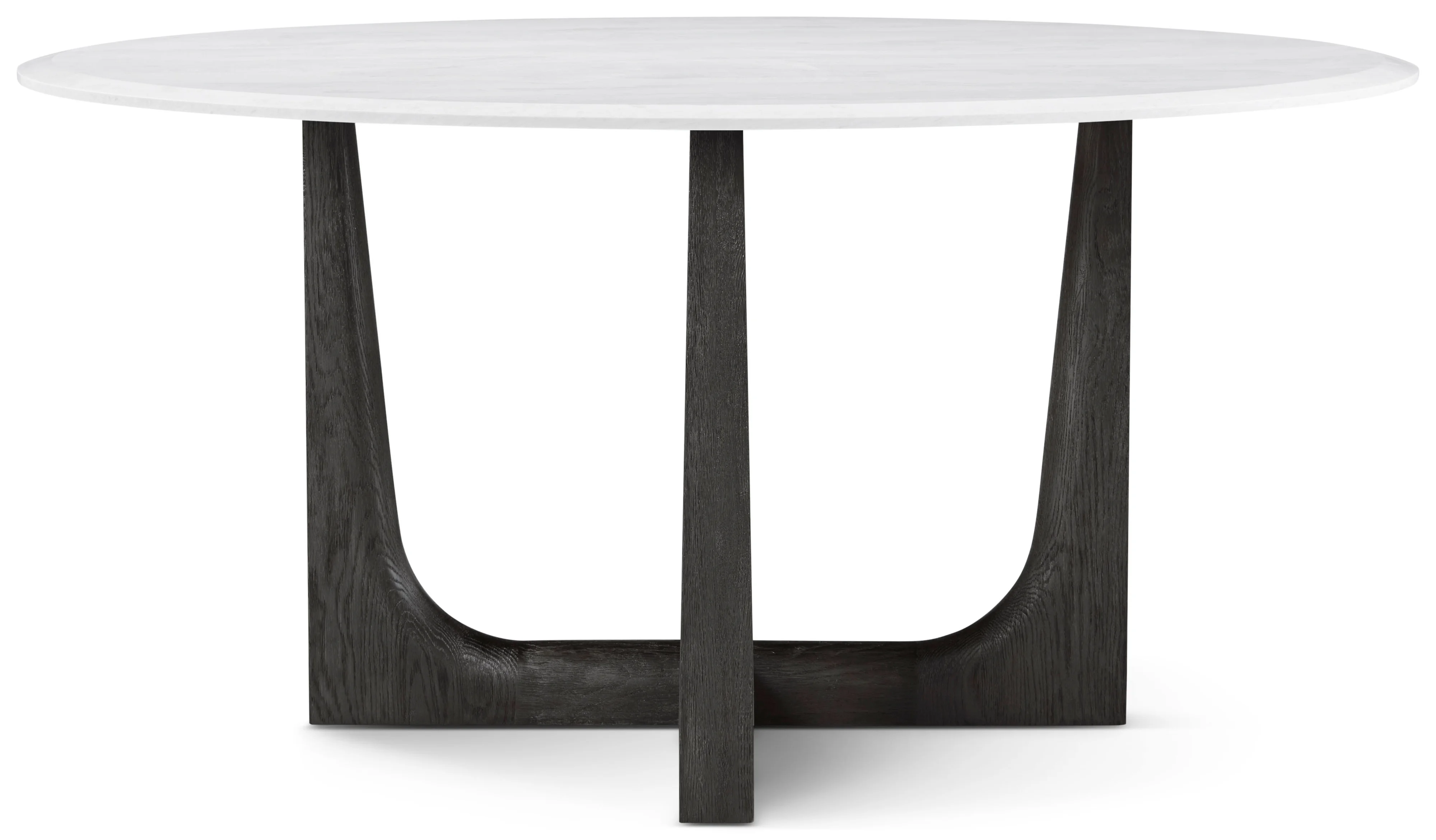 moreFeaturing a beautiful Gan Eden quartz tabletop, the Repose Round Quartz Top Dining Table comfortably seats six guests. The X-style base and elegant legs branch upward, perfectly balancing the beveled edge stone and giving a light air to the piece.