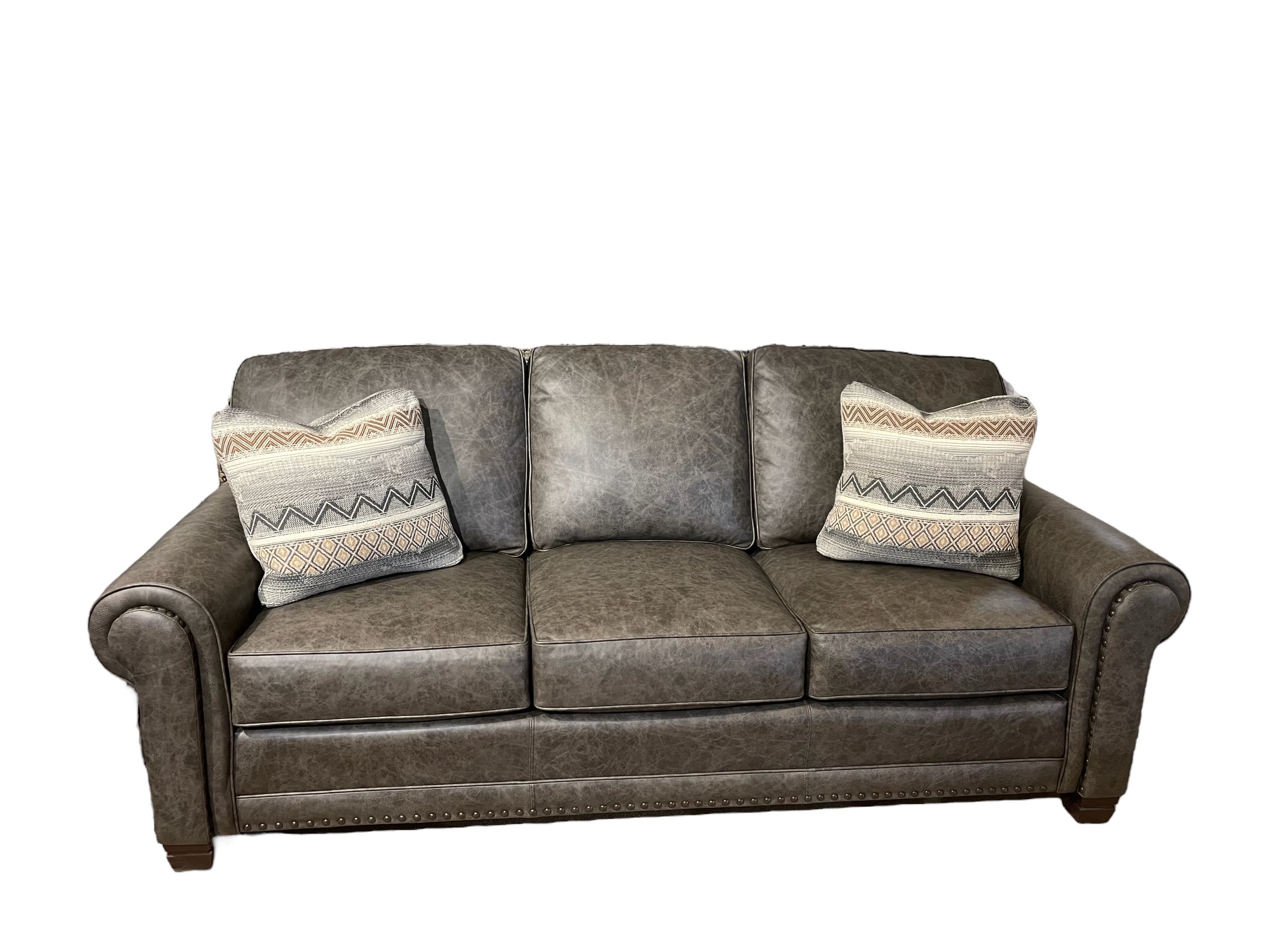 The Sectionals and More Leather Sofa with Pillows Included, made by Smith Brothers,