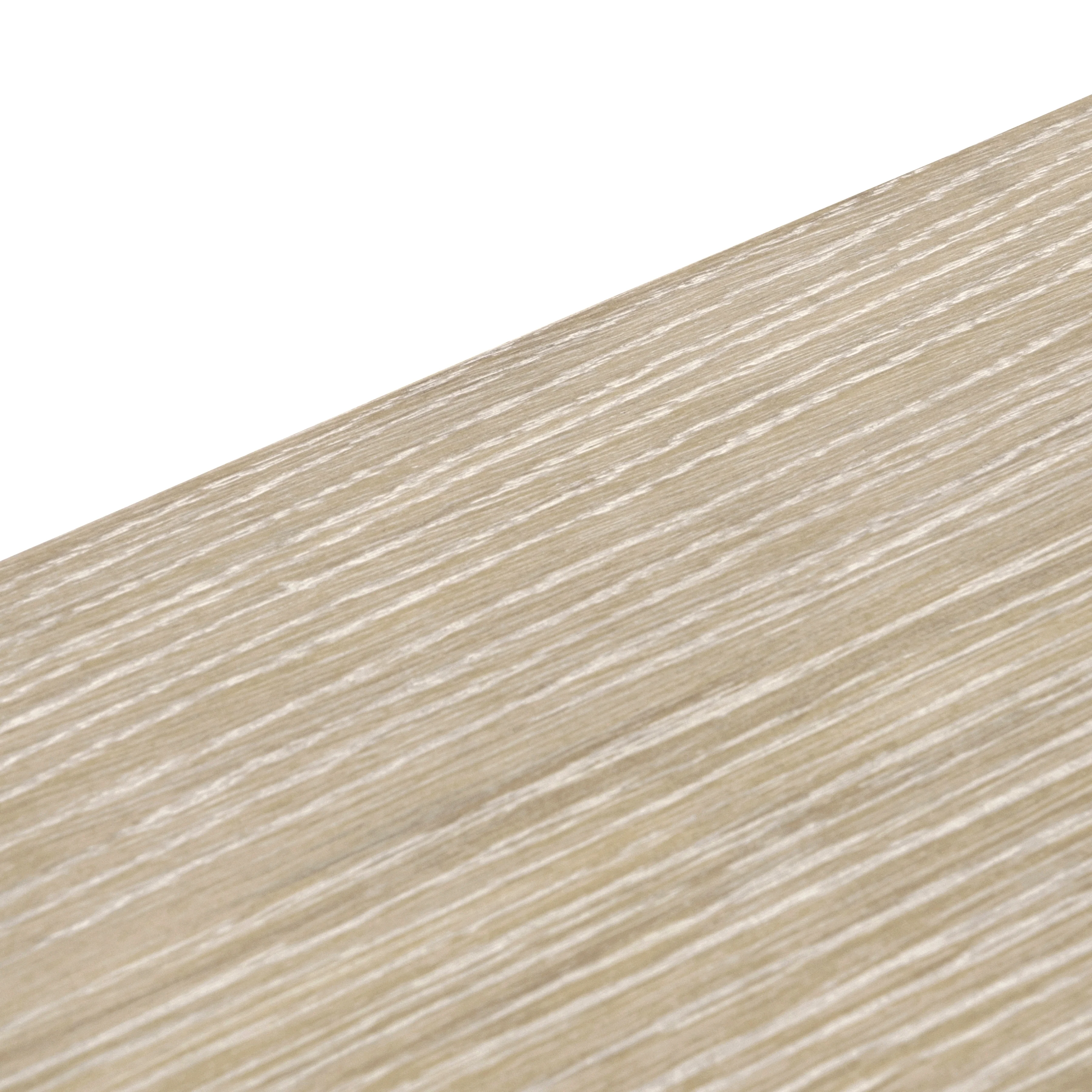 Quartered ash solids and quartered white oak veneers, Dune finish on rectangular nightstand, Three soft-close drawers with aluminum tab pull, in Shiny Nickel finish, running the length of each drawer, Two-port USB charger located on upper back panel of case, Adjustable glides, Anti-tip kit, Specifications subject to change without notice