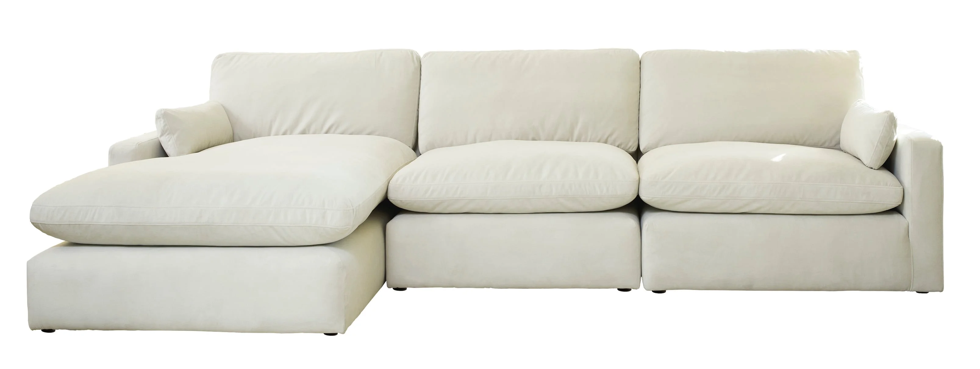 moreWith sumptuously soft velvet upholstery and cloud-like comfort, this sectional puts your love of luxury on display. The clean-cut appearance of this ivory-hued sectional blends beautifully with your tasteful surroundings. Best of all, the modular design lets you stage the pieces solo or rearrange them for a look that's always fresh.