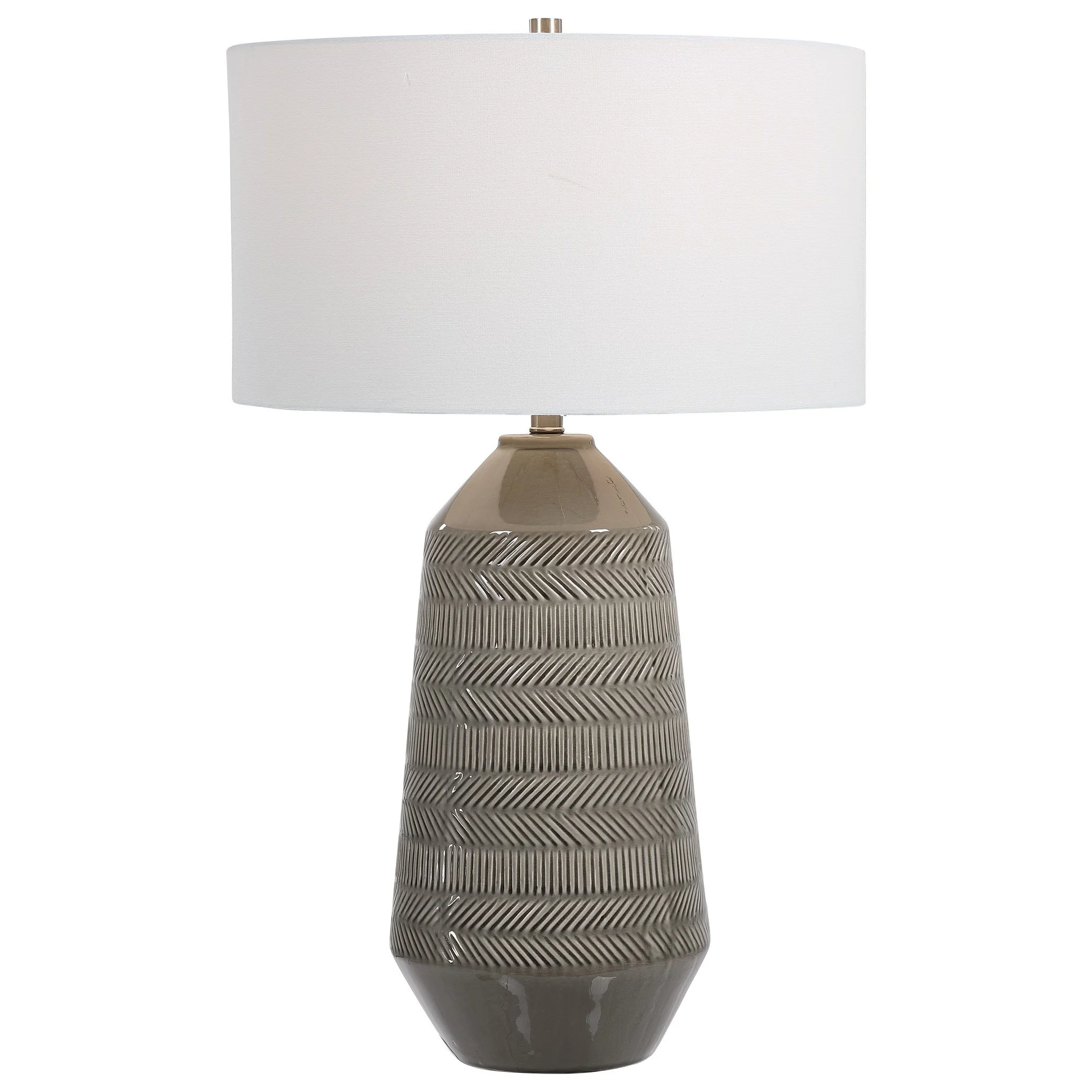 - Showcasing A Classic Carved Herringbone Pattern, This Ceramic Table Lamp Is Finished In A Versatile Soft Gray Glaze With Brushed Nickel Accents.