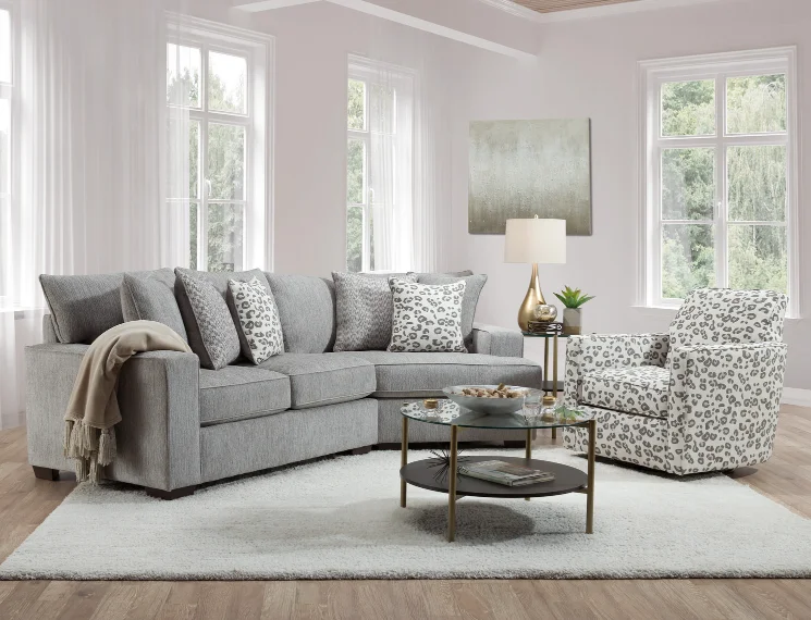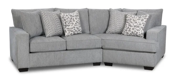 moreIntroducing the 2 piece Callaway Sectional by Furniture Creations. This stylish and modern sectional is crafted with an engineered and hardwood frame, sinuous spring suspension, and includes six pillows. Four pillows are in contrasting fabrics, and two are in the same fabric as the sectional. Available only as shown. With great value at its core, this sectional is sure to bring your living space to life in comfort and style.