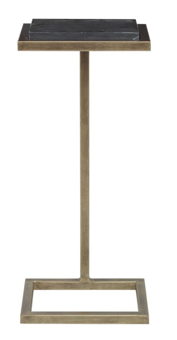 moreThis elegantly designed martini table will be perfect beside your favorite chair. Finished in an aged gold, it is topped with a thick black honed marble. The marble is sealed to prevent staining. Also available in satin black finish with white marble, W23014.
