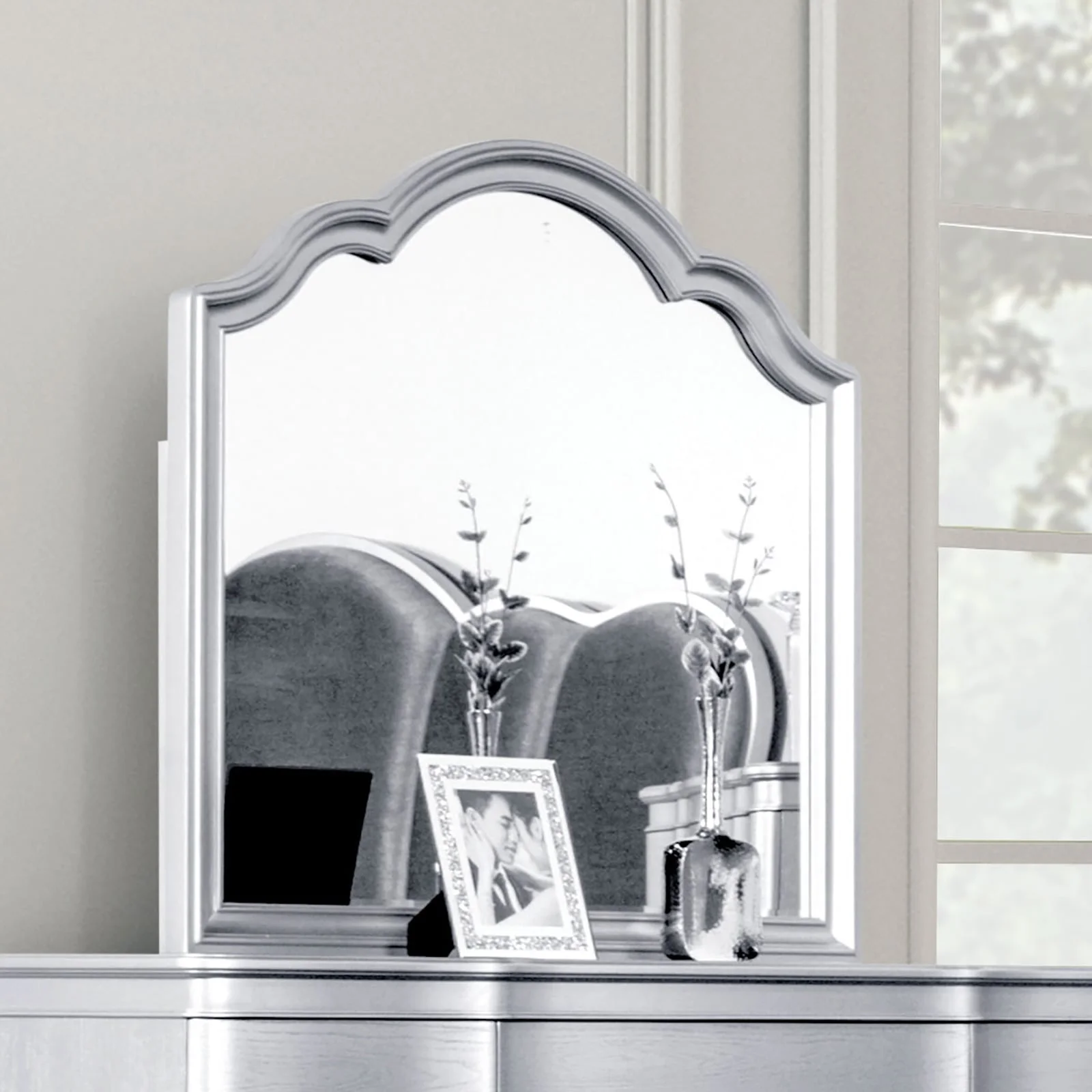 The Melodi Parc Glam Arched Dresser Mirror, made by Furniture of America,