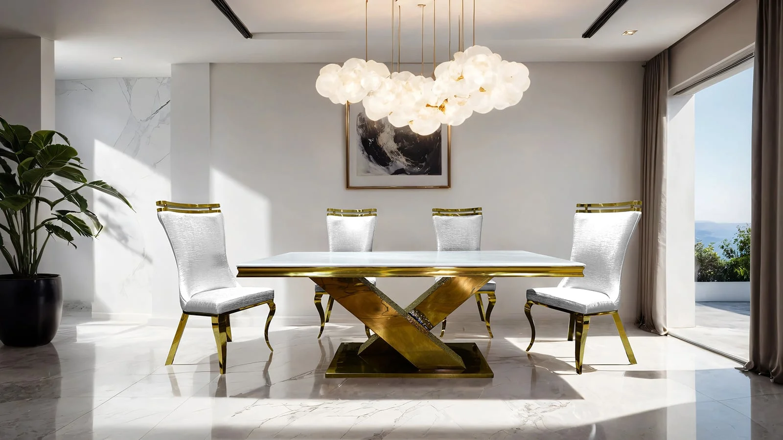 Glam 7-Piece Dining Table Set with White Side Chairs
