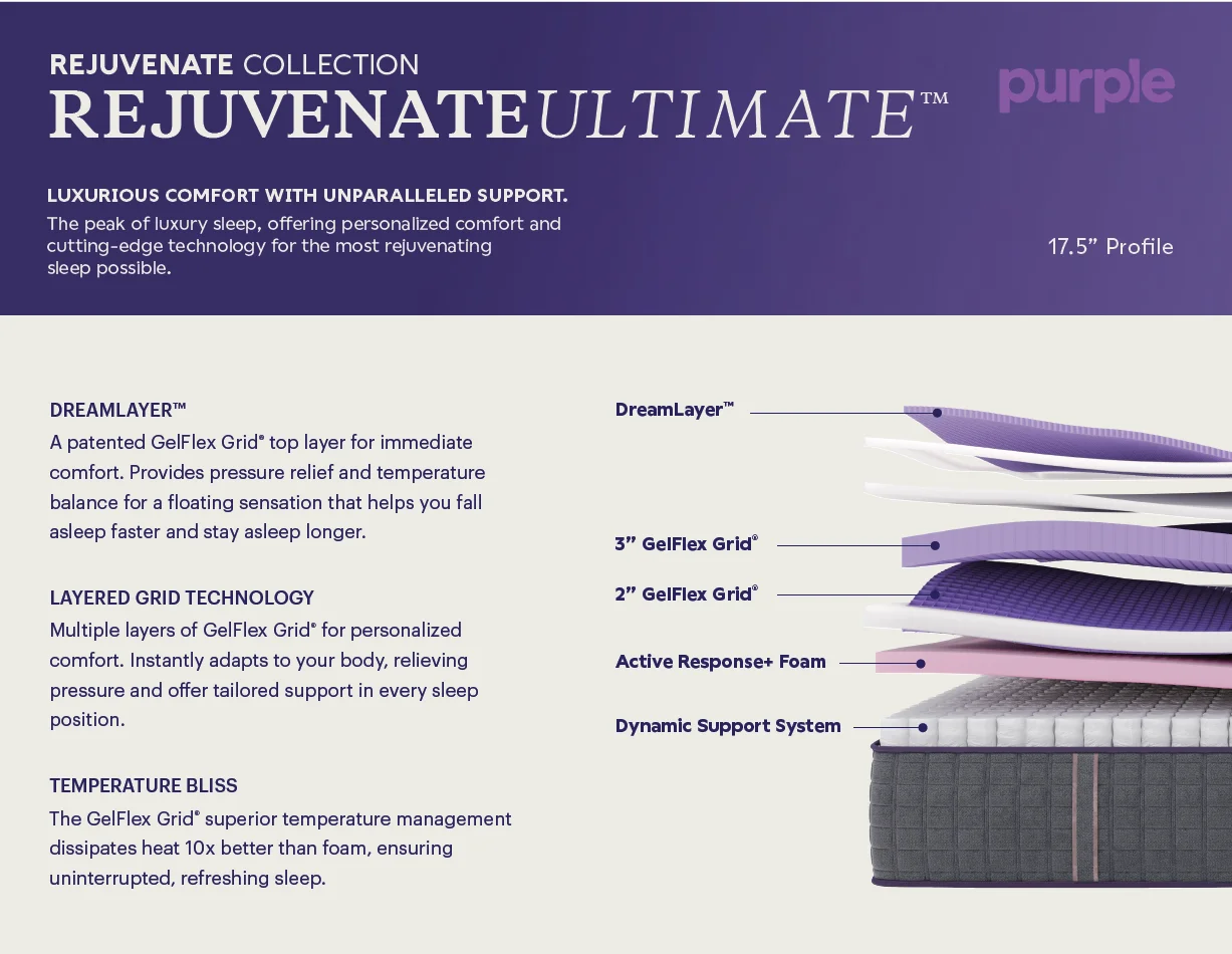 The Rejuvenate 2.0 Ultimate Queen Rejuvenate Ultimate Mattress, made by Purple,