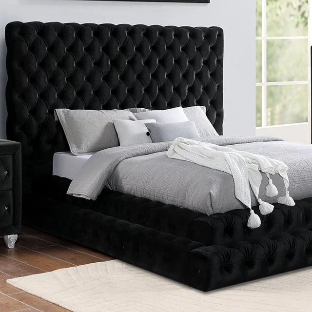 The Stefania Glam Queen Low-Profile Bed with Deep Button Tufting, made by Furniture of America,