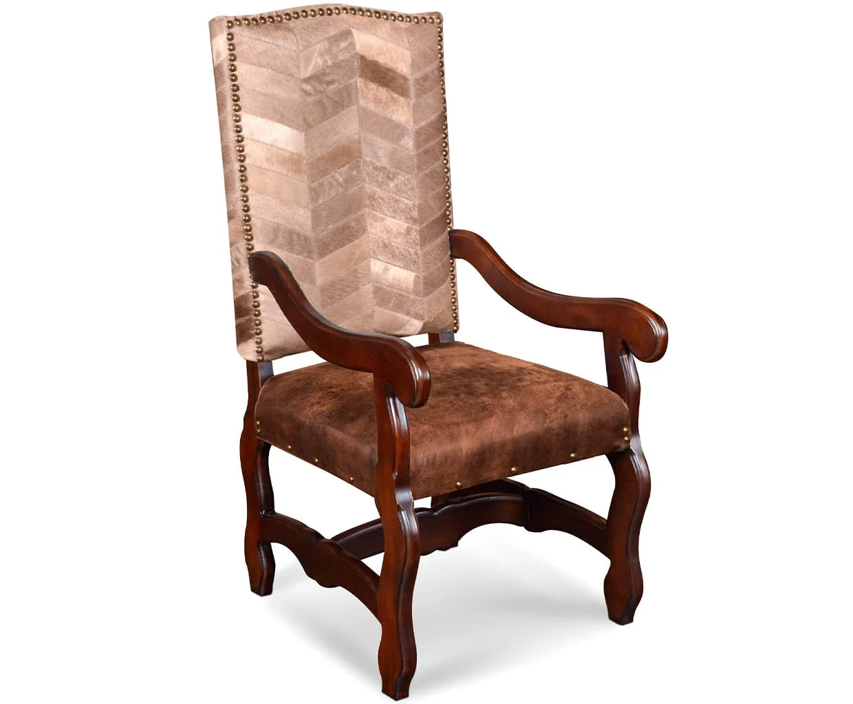 The Rustic Two-Tone Upholstered Arm Chair with Nailhead Detailing, made by Horizon Home,