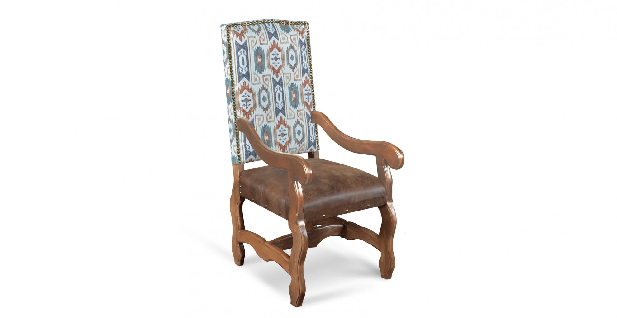 The Rustic Two-Tone Upholstered Arm Chair with Nailhead Detailing, made by Horizon Home,