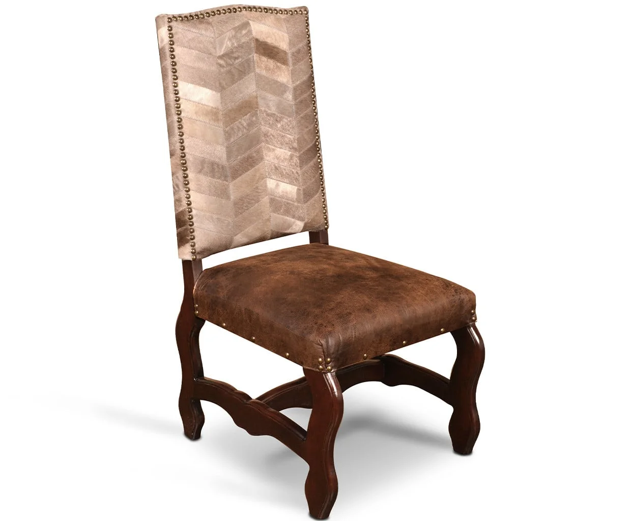 The Rustic Two-Tone Upholstered Side Chair with Nailhead Detailing, made by Horizon Home,