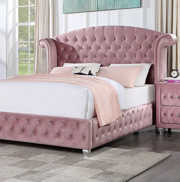 Wingback Design, Velvet-like, Solid Wood, Others, Fully Upholstered, Pink